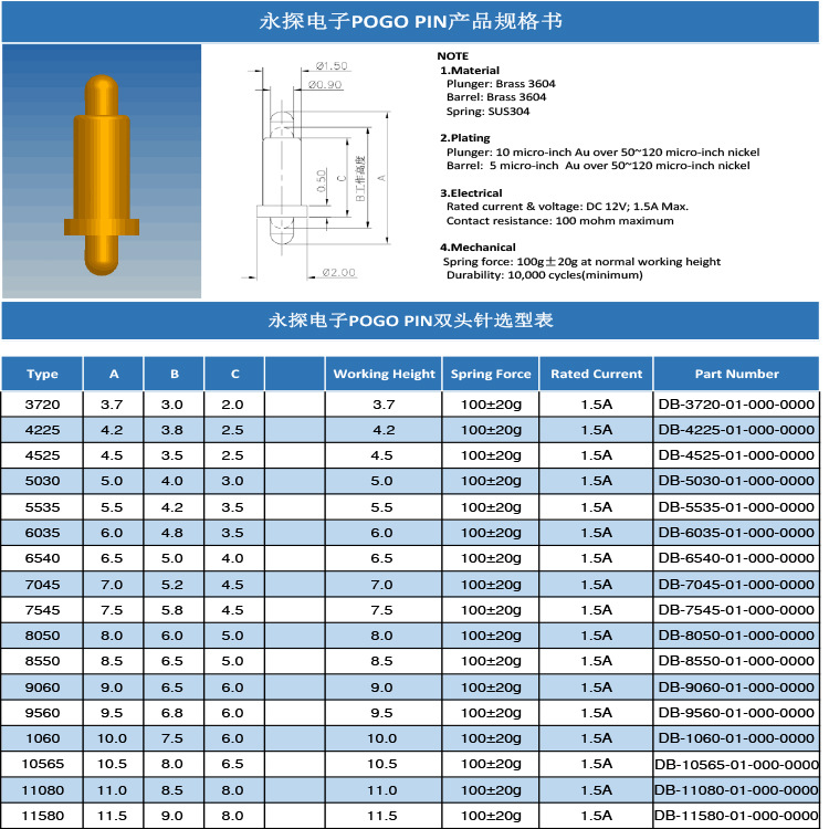 廠(chǎng)家非標定 制鍍金黃銅觸針pogopin 彈簧針 大電流針頂針連接器